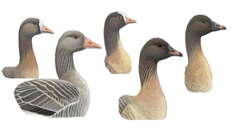 Pilkoji žąsis – didelė, šviesesnė, snapas ryškiai oranžinis, o balsas – gilesnis.