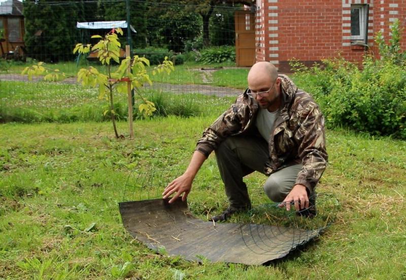 Metalinis tinklas užlenkiamas taip, kad susidarytų maždaug 28 centimetrų skersmens cilindras. Vielos galai turi būti kruopščiai užlenkti ir prispausti replėmis, kad neliktų aštrių briaunų. Ant likusios tinklo dalies dedamas ruberoido lakštas, maždaug keturių centimetrų storio šieno arba šiaudų sluoksnis, o visa konstrukcija susukama į ritinį ir tvirtai fiksuojama vielos galais.
