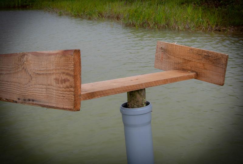 Patogu, kai stulpas yra ilgesnis. Tokiu atveju supuvusią dalį galima nupjauti ir platformą pritvirtinti iš naujo, nekeičiant visos konstrukcijos.