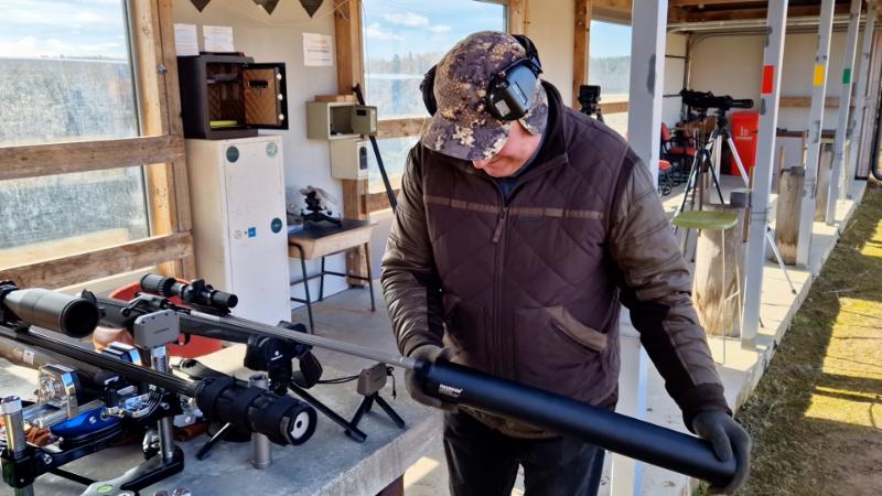 A. Bundzenas buvo atsinešęs didelio dydžio duslintuvą, skirtą .338 kalibrui. Iš pradžių atrodė, kad greitis bus dar didesnis, bet taip neįvyko. Jis paaiškino tai tuo, kad duslintuvas skirtas didesnio kalibro kulkai (8,6 mm prieš 7,62 mm .308 Win), todėl atstumas tarp duslintuvo pertvarų ir kulkos yra didesnis – dalis dujų praeina pro kulką, o ne ją pagreitina. Išvada – reikia naudoti duslintuvą, pritaikytą konkrečiam kalibrui, o ne tiesiog didesnį.