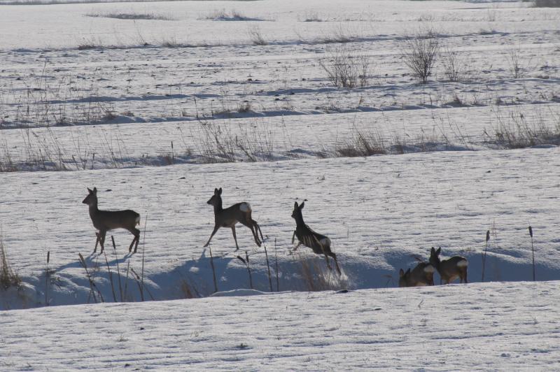 Dar viena veiksminga priemonė sudėtingomis žiemos sąlygomis yra sąmoningas sniego plutos ardymas laukuose ir miško pakraščiuose, naudojant traktorių ar ekskavatorių ir formuojant negilias vėžes. Tokie pravažiavimai suskaldo kietą sniego dangą ir sudaro gyvūnams judėjimo koridorius, kuriais jie gali lengviau migruoti, pasiekti maitinimosi vietas ir taupyti energiją. Tai ypač svarbu kanopiniams, kuriems judėjimas per nepažeistą sniego plutą reikalauja daug jėgų ir didina traumų riziką. Tinkamai parinktos vietos, pavyzdžiui, palei miško linijas, tarp šėrimo vietų ar link natūralių slėptuvių, gali realiai pagerinti gyvūnų galimybes išgyventi laikotarpiu, kai natūralus judėjimas tampa itin apsunkintas.