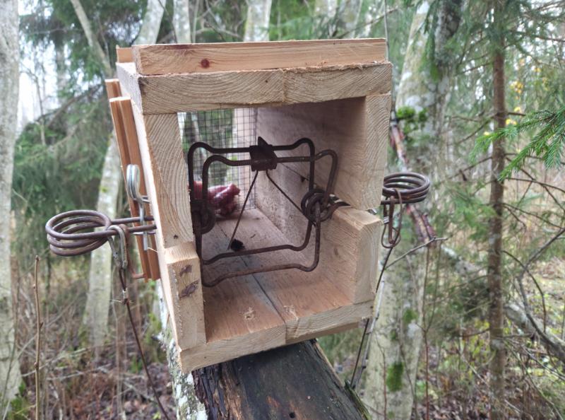 Dėžutės konstrukciją reikia padaryti tokią, kad kiaunė, pakliuvusi į spąstus, negalėtų jų išmušti ir liktų juose pagauta.