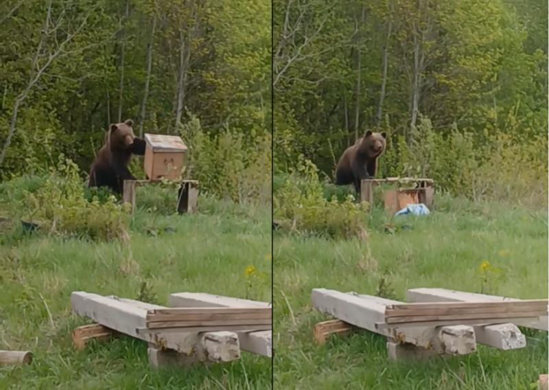Pavojinga padėtis Ignalinos rajone. Iš bityno išvaryta meška persikėlė į kitą. Lankosi ir namo kieme
