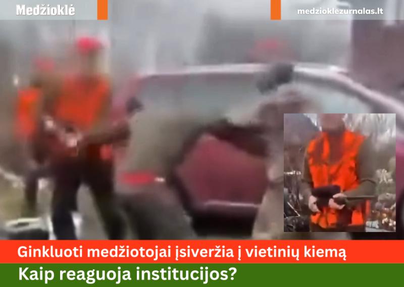 Nufilmuota, kaip ginkluoti medžiotojai įsiveržia į vietinių kiemą. Kaip reaguoja institucijos?