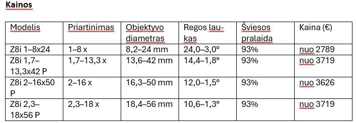 Z8 jau daugelį metų yra vienas populiariausių aukščiausios klasės optinių taikiklių medžiotojų tarpe. Tačiau Z8i+ stebina ne tik patobulintais techniniais parametrais, bet ir patobulinta naudojimo patirtimi: