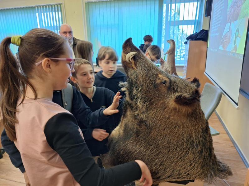 Lapkričio 28 dieną mokyklos skaitykloje vyko ypatingas susitikimas, kuriame dalyvavo 5b ir 7c klasių mokiniai. Svečias vedė informatyvią bei gyvą pamoką, kviesdamas vaikus į pažintinę kelionę po Lietuvos gamtą. Jis pasakojo apie atsakingą medžioklę, nykstančių rūšių apsaugos svarbą, ekosistemos pusiausvyros palaikymą ir harmoningo žmogaus bei gamtos santykio reikšmę.