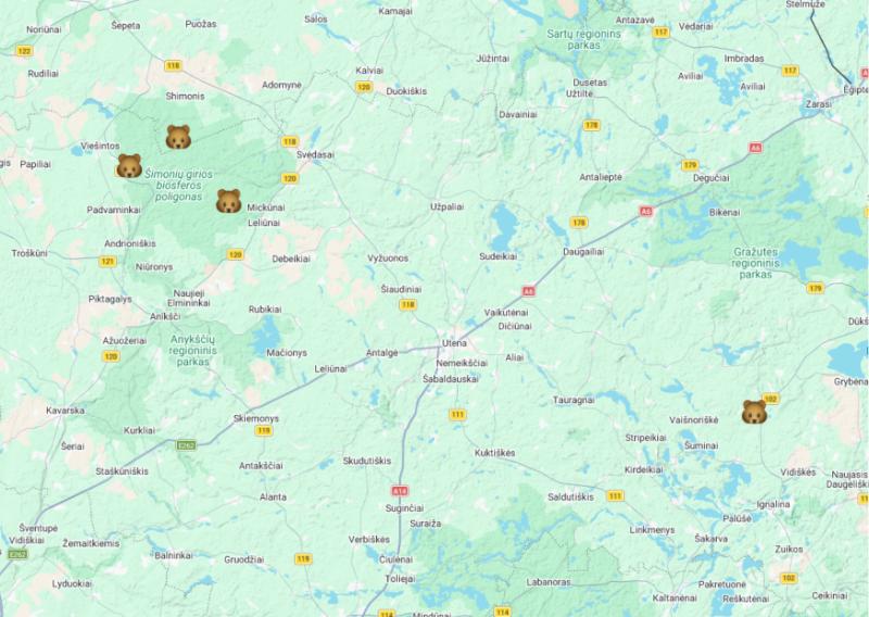 Lietuvoje pastebėtų meškų žemėlapis