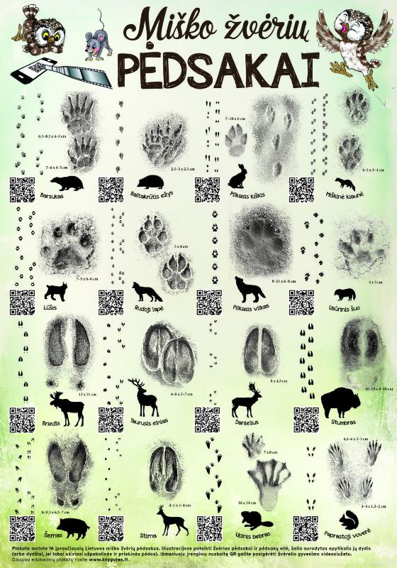 Leidykla „Lututė“ yra išleidusi edukacinį plakatą „Miško žvėrių pėdsakai“, kur galite susipažinti su 16 įprasčiausių Lietuvos miško žvėrių pėdsakais. Pasidomėkite prieš eidami į gamtą, gal jums pavyks rasti retų ir saugomų žvėrelių pėdsakų.