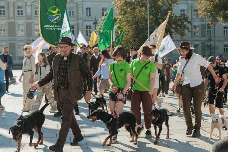 „Pirmą šventę Vilniuje surengėme prieš šešetą metų. Įvairios jos buvo: vienais metais per Vilnių važiavome iki Gedimino paminklo, kitais metais iki paminklo Gediminui ėjome nuo Bernardinų vienuolyno. Šiemet ėjome nuo Vilniaus rotušės iki paminklo Gediminui, grojo medžioklinis orkestras. Mes norime susirinkusiems parodyti, jog šiandien medžiotojas jau kitoks.