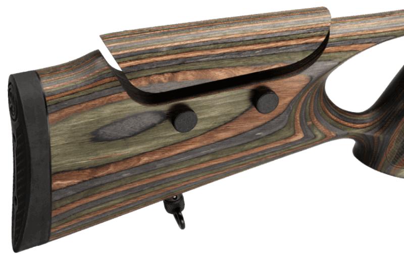 Laminuotos medienos Ergo Flex buožė su nykščio anga yra ergonomiška ir turi reguliuojamą skruostikaulį. Tai leidžia pasiekti optimalų ginklo valdymą ir saugų šūvį.