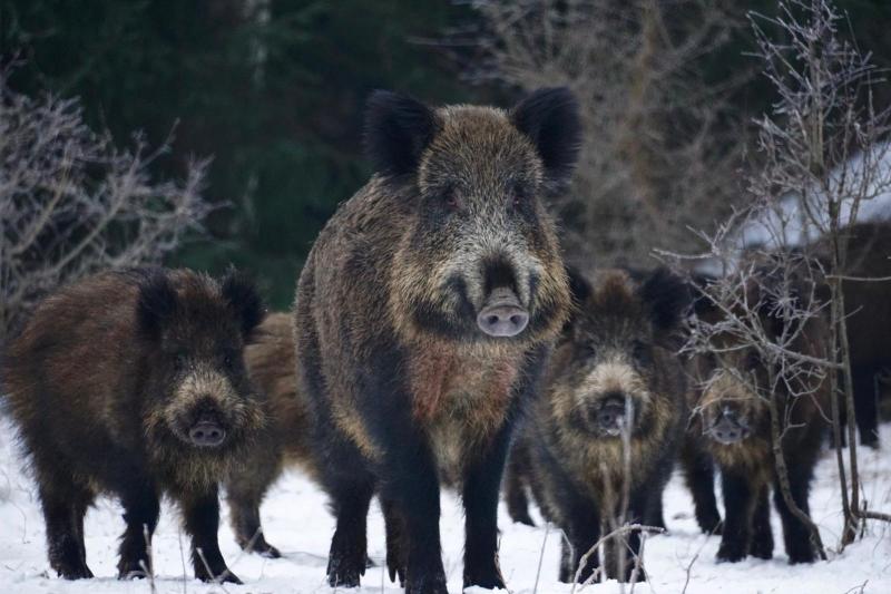 – margus šernus (galbūt naminių kiaulių mišrūnus), išskyrus šernes su jaunikliais iki spalio pradžios;