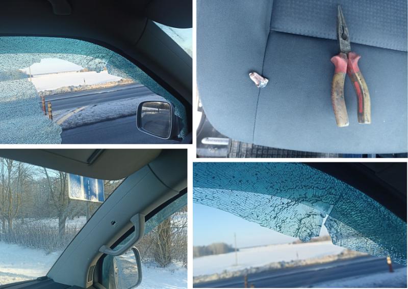 Apžiūrėjus transporto priemonę, priekiniame dešinės pusės statramstyje pastebėta skylė ir rasta kulka. Patirtas materialinis nuostolis šiuo metu dar tikslinamas. Policija nurodo, kad pagal pirminę informaciją šūvis galėjo būti paleistas medžioklės metu.